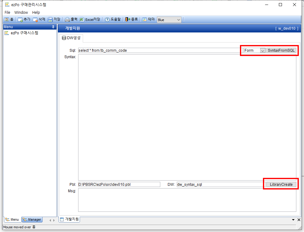 | ① | SyntaxFromSQL을 이용해 DataWindow의 Syntax 생성 |
