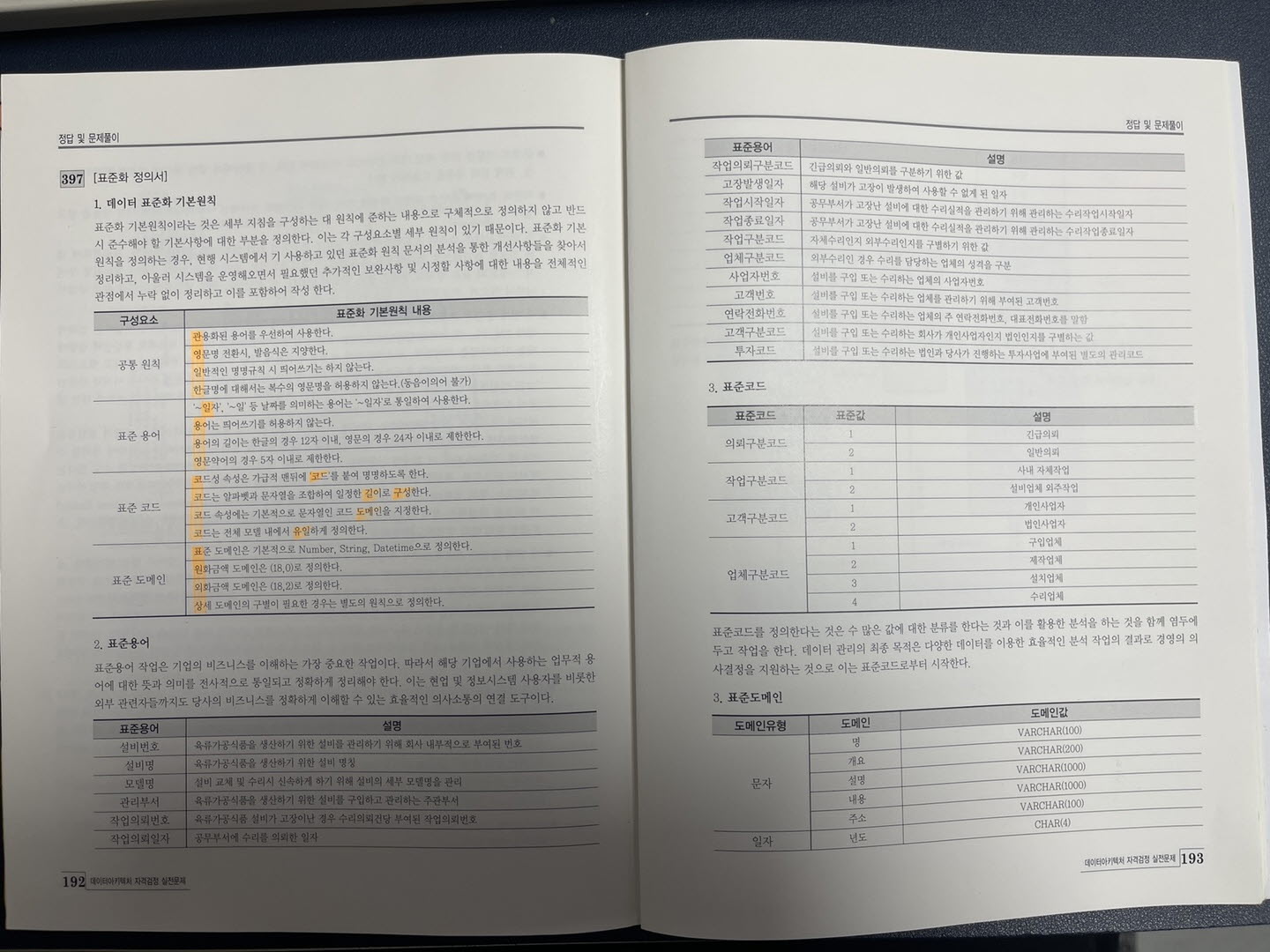 한국데이터산업진흥원 참고자료 (DA가이드) 데이터 표준 정의(DA가이드) 데이터 표준화 원칙 정의(DA가이드) 데이터 표준 관리 도구 (DA가이드) 데이터 표준화 개념(DA가이드) 데이터 표준화 필요성 1. 데이터 표준화 기본원칙구성요소기본원칙 내용공통원칙관용화된 용어를 우선하여 사용한다.영문명 전환시, 발음식은 지양한다.일반적인 명명규칙시 띄어쓰기는 하지 않는다.한글명에 대해서 복수의 영문명은 허용하지 않는다.(동음이의어 불가)표준용어'~일자', '~일' 등 날짜를 의미하는 용어는 '~일자'로 통일하여 사용한다.용어는 띄어쓰기를 허용하지 않는다.용어의 길이는 한글 12자, 영문 24자 이내로 제한한다.영문약어의 경우 5자 이내로 제한한다.표준코드코드성 속성은 맨뒤에 '코드'를 붙여서 명명한다.코드는 알..